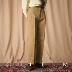 CULTUM纯棉灯芯绒复古直筒高腰单褶西裤男士休闲纯色长裤西装裤子