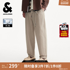 杰克琼斯秋季新款男装纯棉抽绳廓形宽松休闲裤阔腿裤男士长裤子