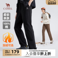 骆驼男装休闲针织长裤男士户外新款秋冬纯棉黑色直筒运动裤子宽松
