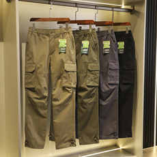 欧美户外风~男士纯棉舒适弹力多口袋宽松运动直筒工装裤休闲长裤