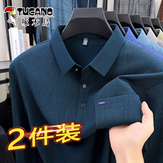 啄木鸟男士春秋假两件纯棉长袖T恤上衣翻领卫衣中老年宽松打底衫