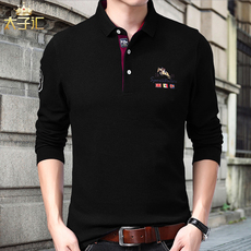 保罗100%纯棉长袖T恤男士翻领上衣刺绣马标秋季休闲中青年Polo衫