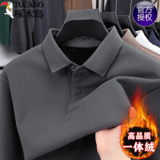 中老年男士加绒加厚T恤秋冬长袖保暖上衣纯棉翻领爸爸厚款打底衫