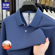 罗蒙100%纯棉长袖t恤男2025春季新款翻领polo衫休闲男士百搭上衣