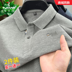 啄木鸟100%纯棉男士短袖t恤2025新款高端品牌中年翻领全棉polo衫