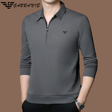 正品意大利名牌秋季长袖t恤男士纯棉半拉链高端休闲翻领polo衫男