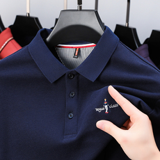 2025秋季新款长袖T恤男装刺绣商务翻领polo衫男纯棉打底衫潮上衣