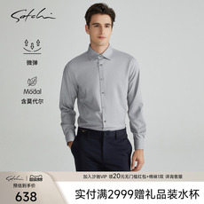 SATCHI沙驰男装男士长袖衬衫秋季新款免烫高端修身商务婚礼衬衣男