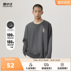 100%纯棉长袖T恤男宽松潮流印花青年圆领体恤学生休闲春秋打底衫