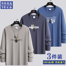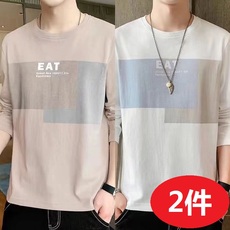 100%纯棉男款长袖T恤秋季新款休闲上衣青少年潮打底衫上衣服体恤