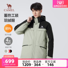 骆驼男装长款羽绒服秋冬情侣同款三防连帽加厚聚热保暖工装长外套