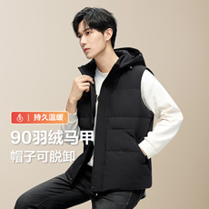 红豆男装90羽绒马甲2025冬季新品帽子可拆卸保暖背心款羽绒服外套