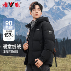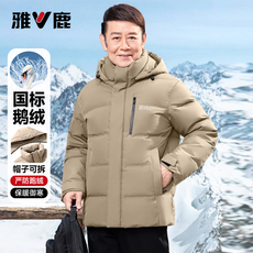 【鹅绒】雅鹿短款爸爸装羽绒服男冬季新款中老年牛奶丝保暖外套