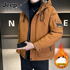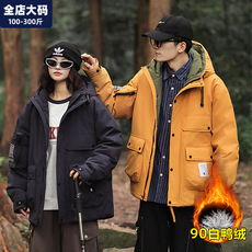 连帽羽绒服男士短款2025冬季新款宽松户外工装鸭绒保暖外套冲锋衣