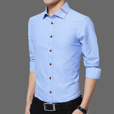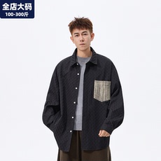 长袖衬衫男秋季新款潮牌翻领夹克外套青少年胖子加肥加大大码男装