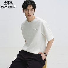 【提花】太平鸟男装纯色t重磅短袖T恤2025夏新款刺绣白T宽松体恤S