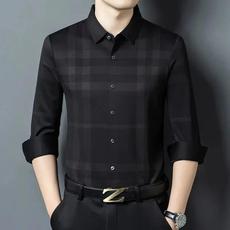 格子衬衫男长袖夏季泡泡纱商务修身绅士免烫衣经典尖扣领休闲衬衣