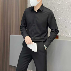 2025新款高级感黑色大尖领修身长袖衬衫男士商务休闲免烫抗皱衬衣