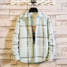 法娅茜格子长袖男装衬衫修身棉英伦风休闲百搭新款衬衫男式收腰寸