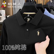 稻草人纯棉长袖t恤男士春秋新款翻领刺绣polo衫中年休闲打底上衣