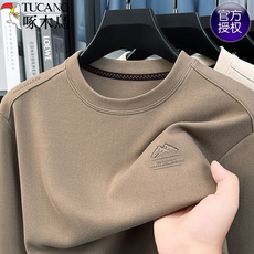 啄木鸟男士长袖t恤2025新款秋季中年爸爸装圆领套头休闲打底上衣T