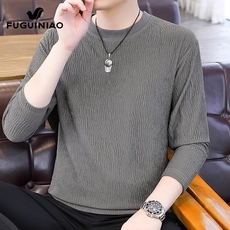 秋季纯色男士冰丝长袖t恤新款2024圆领上衣宽松大码打底衫T男装