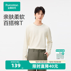 LUUD 100纯棉舒适外穿长袖T恤衫男生简约通勤百搭纯色圆领上衣春
