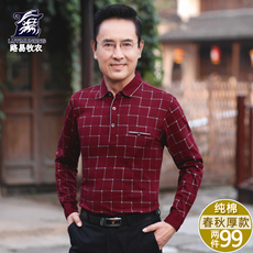 啄木鸟男士纯棉长袖polo衫t恤春秋新款中老年休闲宽松男全棉上衣T