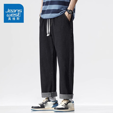 KZH真维斯春季春秋款潮牌黑色抽绳牛仔裤男休闲男裤子青少年学生