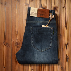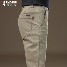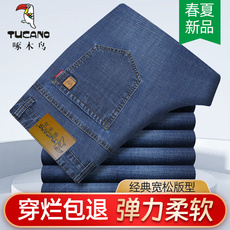 啄木鸟牛仔裤男春秋厚款弹力商务男裤青中年男士直筒休闲宽松裤子