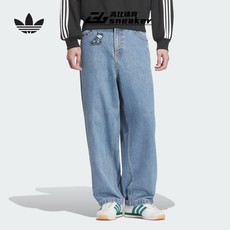阿迪达斯三叶草男裤复古纯棉宽松运动休闲直筒牛仔长裤JV6942