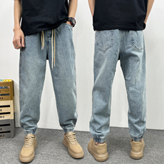 哈伦牛仔裤男宽松束脚美式高街裤子潮流百搭痞帅复古九分休闲男裤