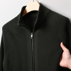 英伦复古男装高级奢华针织外套男商务休闲翻领拉链开衫毛衣男冬季