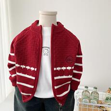 男童毛衣开衫外套春秋款2025新款儿童针织衫男孩帅气拉链毛衣潮