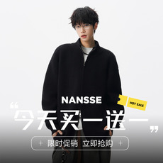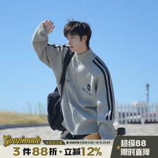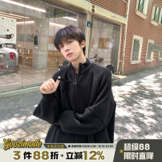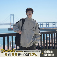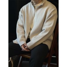 春秋慵懒风简约百搭重磅拉链毛衣男长袖宽松休闲情侣立领针织开衫