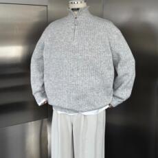 cleanfit灰色拉链毛线衣男春秋半高领针织开衫慵懒高级感正肩外套