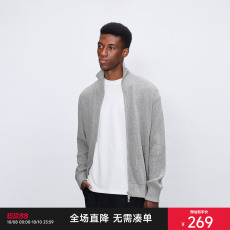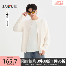 三福2025秋冬季新款肌理波纹开衫拉链宽松毛衣男中领针织衫506165