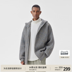乐卡克冬季男款舒适针织开衫带帽拉链外套时尚简约休闲运动上衣