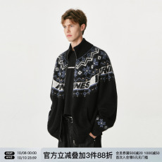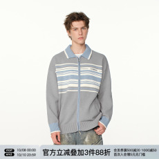 V37老钱风复古双拉链针织开衫男秋季美式解构慵懒风立领毛衣外套