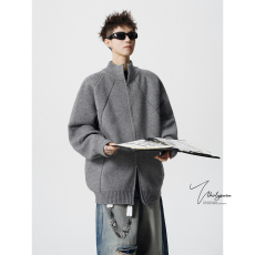 灰色高级感拉链毛衣男款秋季针织开衫外套慵懒风美式复古立领夹克