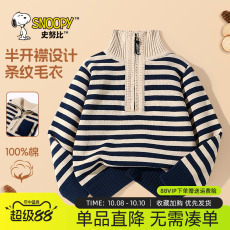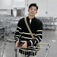 黑白条纹立领半拉链毛衣男秋冬季休闲宽松慵懒风套头针织衫外套