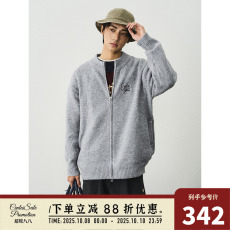 @港仔文艺男 徽章刺绣立领开衫毛衣男秋冬款美式双拉链针织衫外套