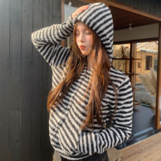 PSO Brand 男装女装刺绣小狗磨毛针织条纹连帽卫衣拉链开衫外套