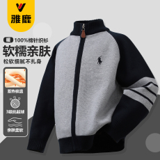 雅鹿男童纯棉毛衣2025秋新款儿童针织衫外套中大儿童拉链开衫上衣