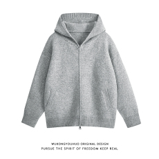 CRXL【重磅800G】仿羊毛卫衣款连帽针织短款拉链毛衣开衫外套男女