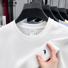 保罗布兰奇短袖t恤男士夏季薄款中青年潮流纯色上衣圆领100%棉T恤