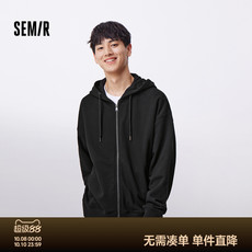 春秋新款开衫卫衣男纯色宽松大码加厚上衣青年百搭连帽加绒外套潮