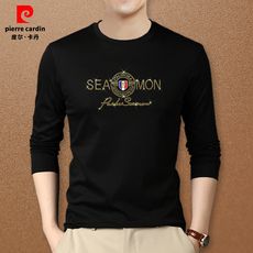 皮尔卡丹春秋冬季纯棉长袖t恤男新款中青年潮流父亲上衣服打底衫