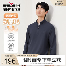 【抗静电】柒牌半开襟卫衣男青年商务T恤秋冬立领华夫格长袖上衣