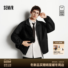 太平鸟男装立体提花行政夹克秋翻领商务休闲茄克外套青年黑色上衣